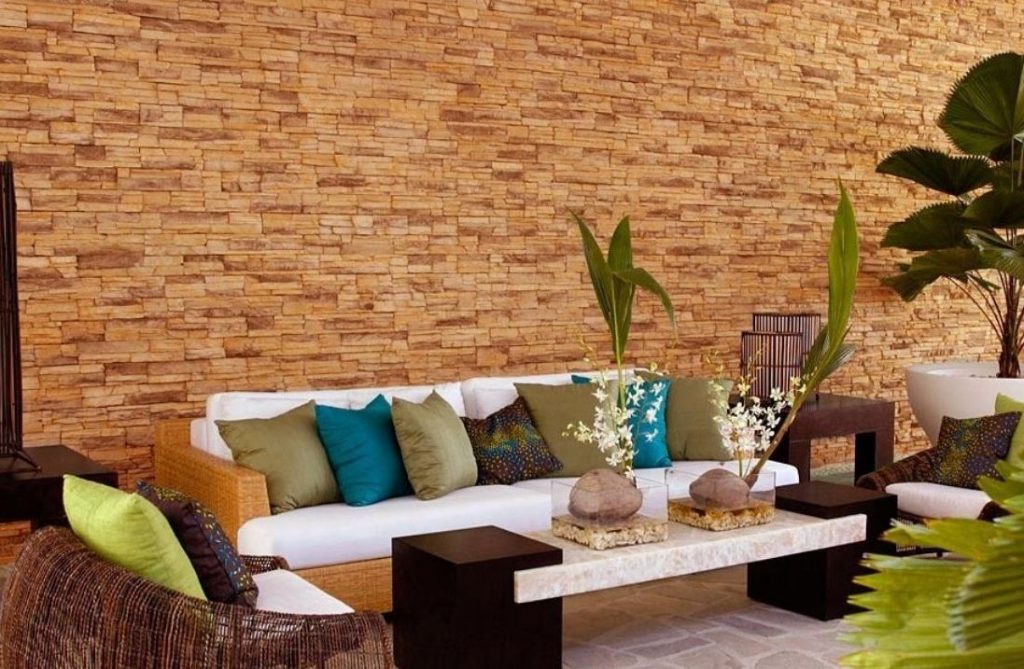الحجر الرملي، وهو مادة تشطيب طبيعية وصديقة للبيئة، يُضفي على التصميم الداخلي طابعًا فريدًا ويخلق جوًا دافئًا. يتمتع بجميع مزايا الحجر الطبيعي، وهو مادة زخرفية فاخرة.