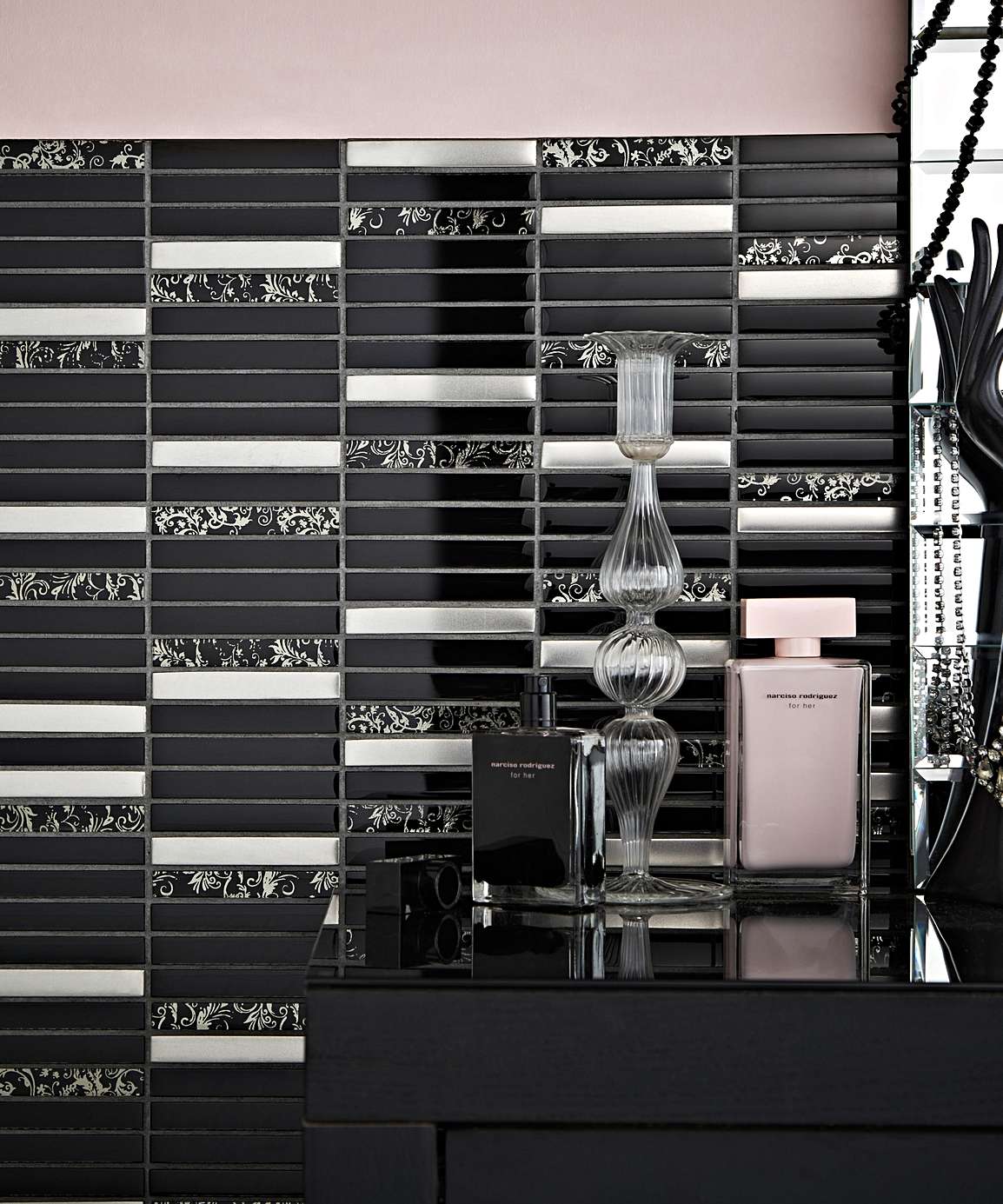 الفسيفساء الزجاجية للاستخدام الداخلي لا تتأثر بتغيرات درجات الحرارة، لذا يُمكن استخدامها في تصميم مآزر المطابخ والمدافئ والمداخن والمواقد، كما تُستخدم في الخارج لتشطيب الواجهات وتركيب الأرضيات الزخرفية على التراسات والباحات. وتُضفي الأصباغ (الكادميوم، والسيلينيوم، وعرق اللؤلؤ، والأفينتورين) أثناء الإنتاج مجموعة ألوان واسعة.