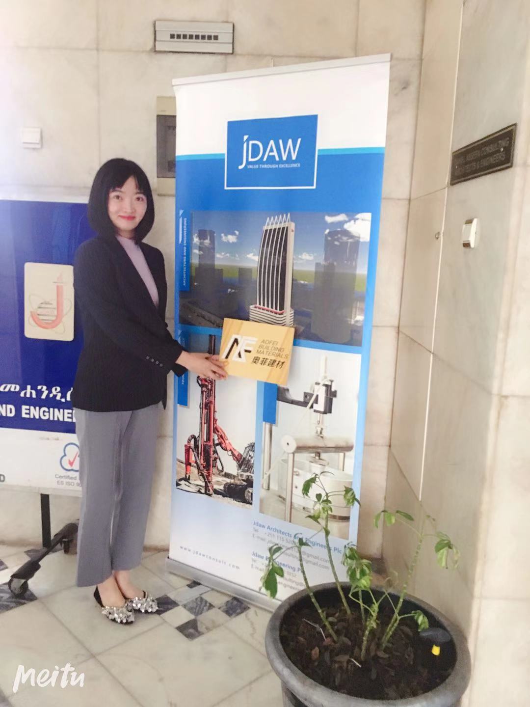 في شركة JDAW Consult، التقيتُ برئيس الشركة، السيد دانيال أسيفا. تُقدّم شركتنا بلاط الأرضيات والواجهات من خلال شركة WuYi في الصين لمشروع بنك زيمين في أديس أبابا، ويسعدنا العمل مع هؤلاء المحترفين.